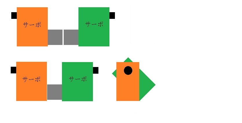 肩の構造はこんな感じ。結構前から使っている構造だけど、こうすると4649化したサーボを生かすことが出来る。