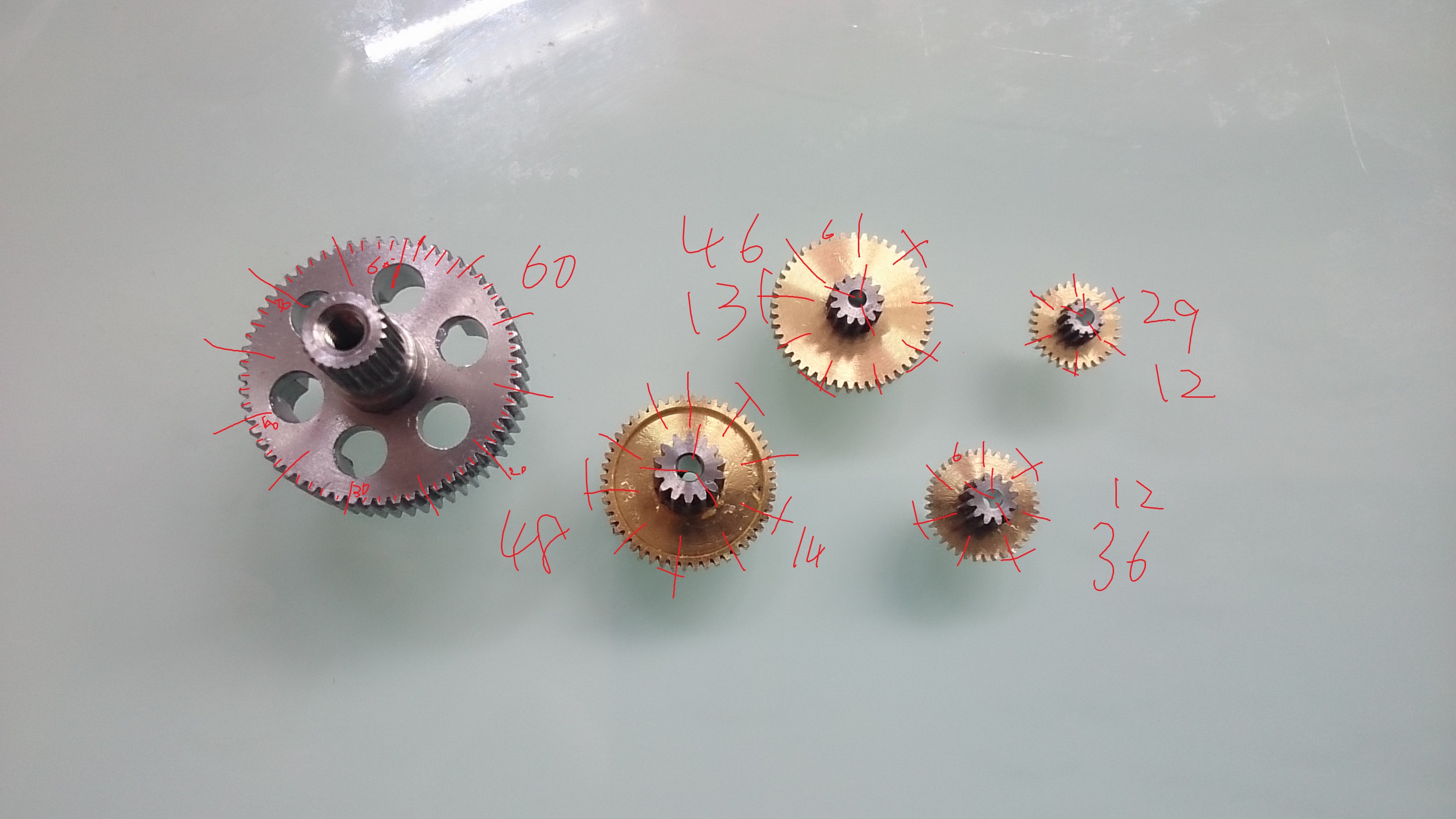 特筆すべきはこのステンレスギヤ。径はK社のサーボの最大径のファイナルギヤと同じ。