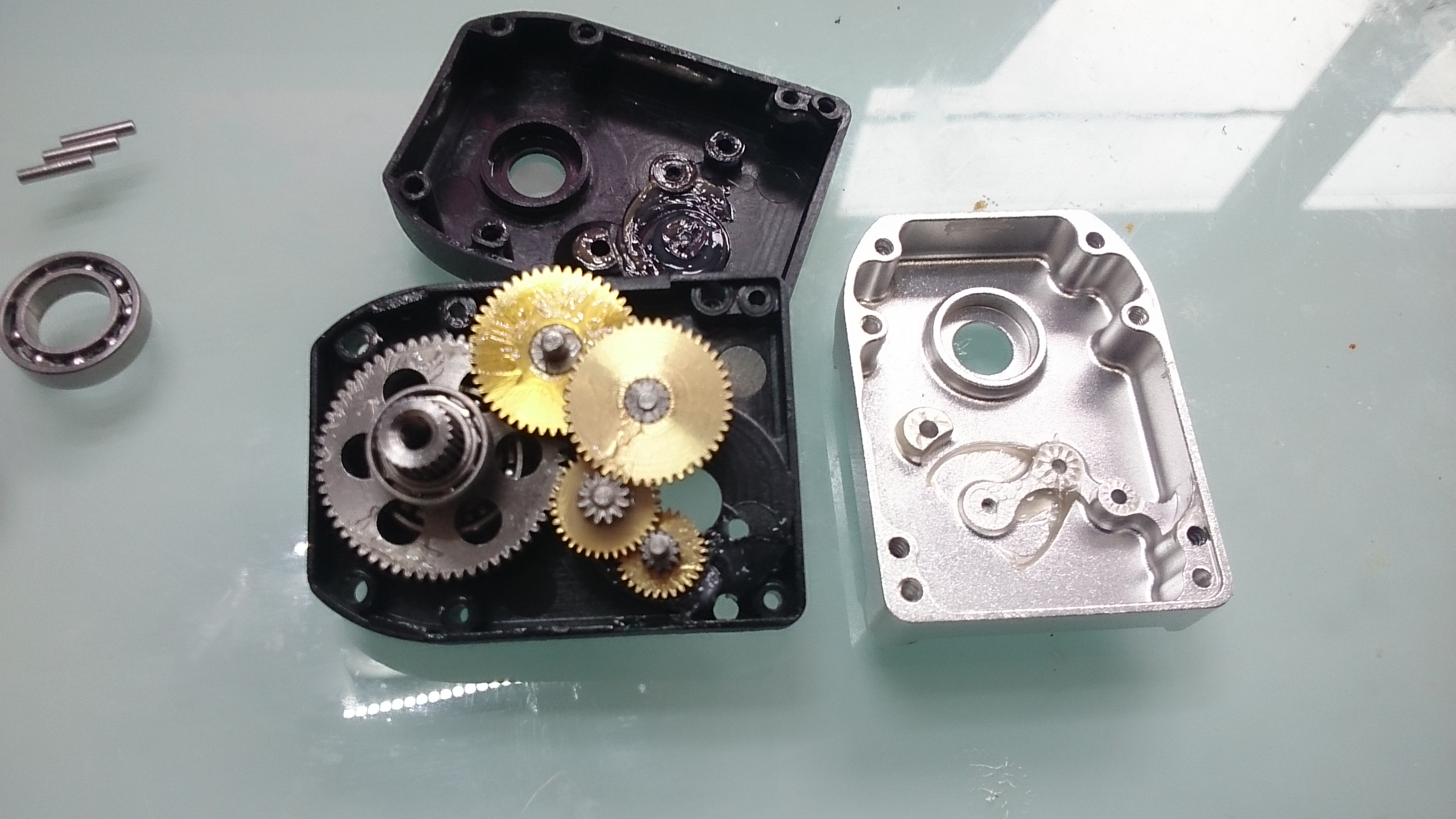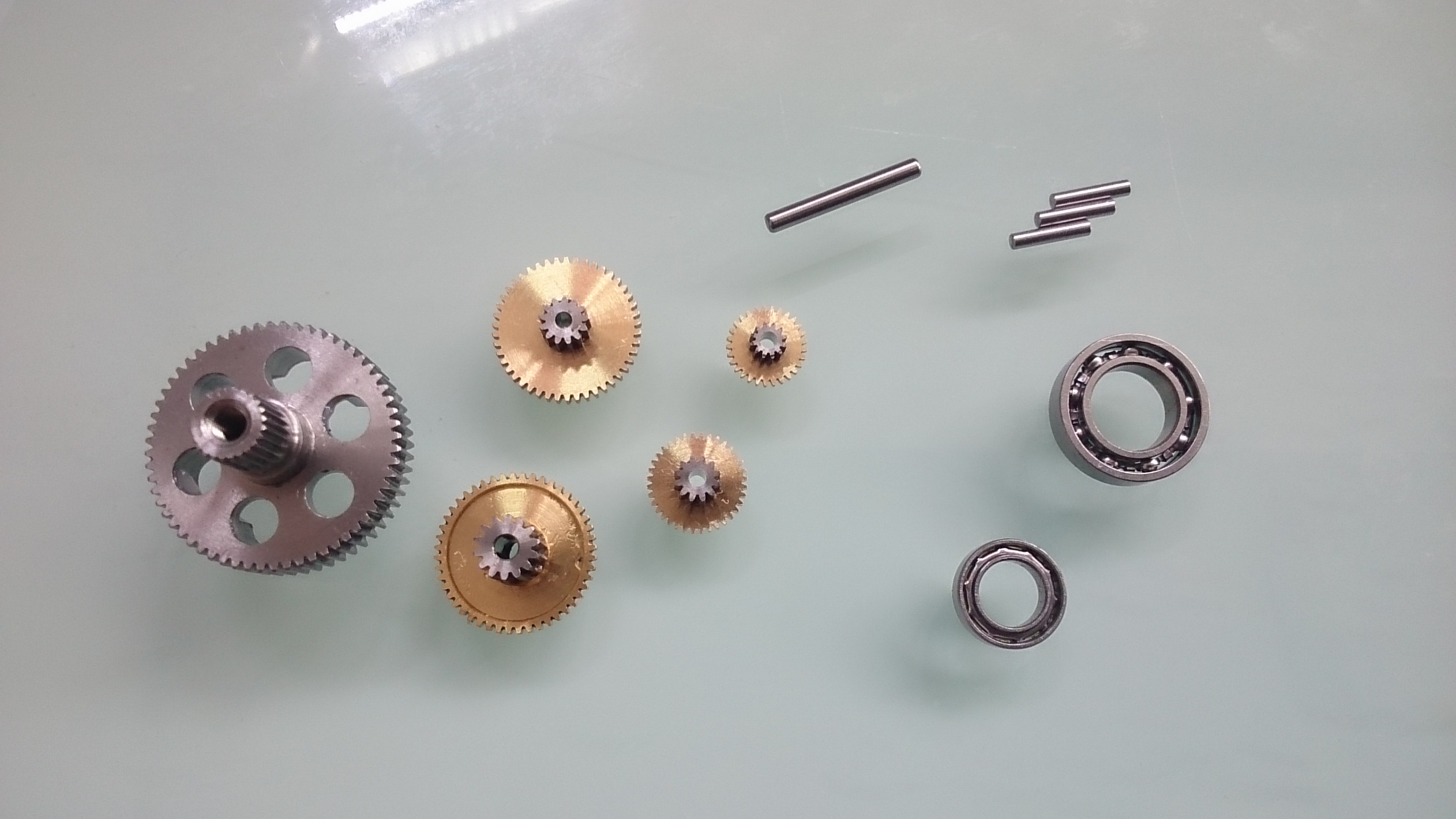 特筆すべきはこのステンレスギヤ。径はK社のサーボの最大径のファイナルギヤと同じ。